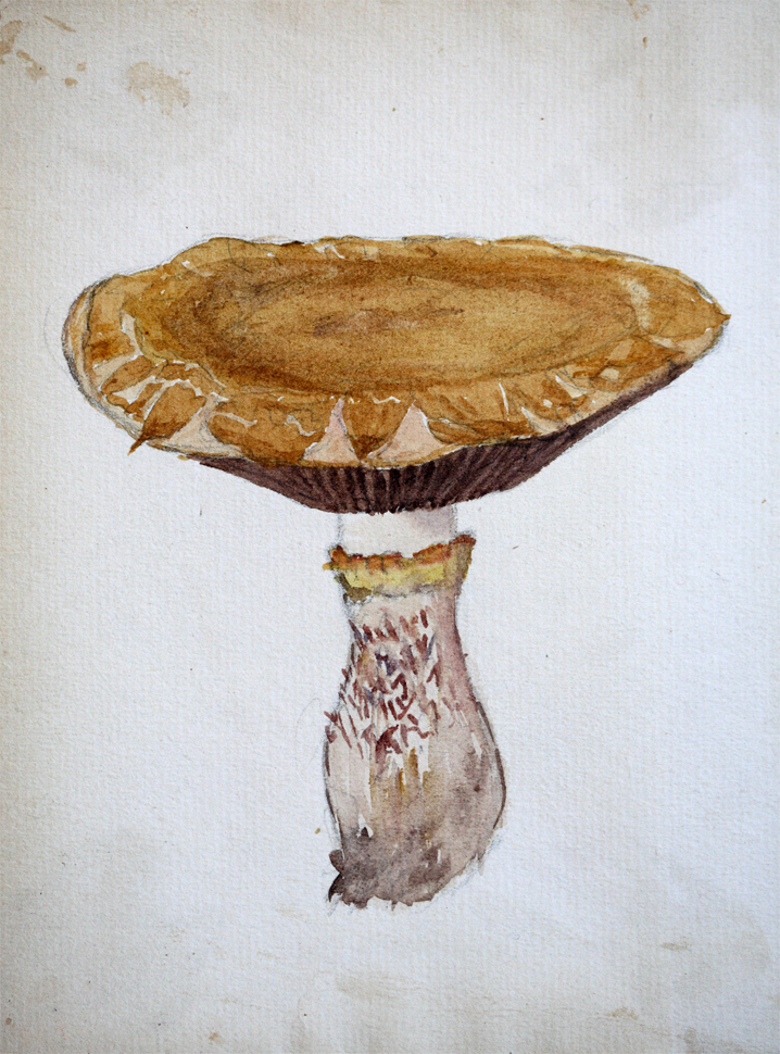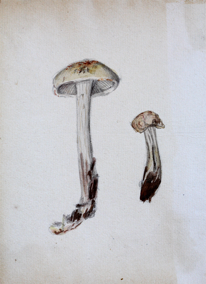 Amanite vaginée (amanita vaginata), mine de plomb et aquarelle sur papier, 1918-1921