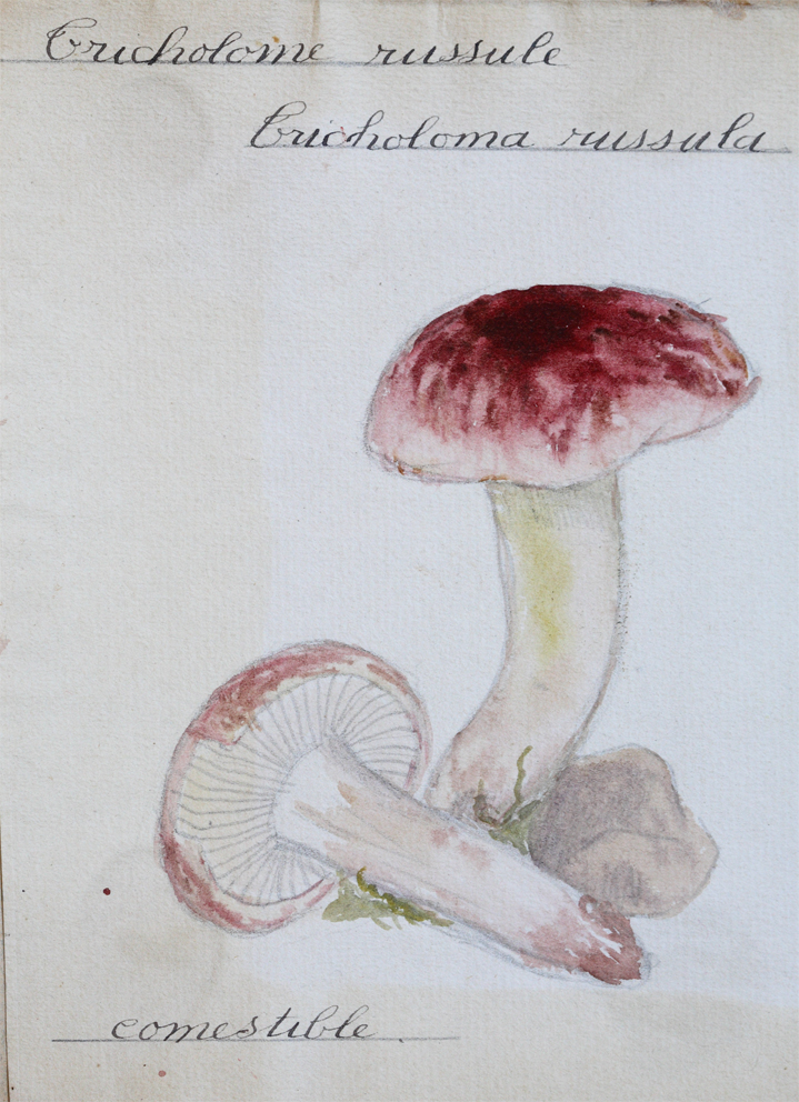 Tricholome russule (tricholoma russula), mine de plomb et aquarelle sur papier, 1918-1921