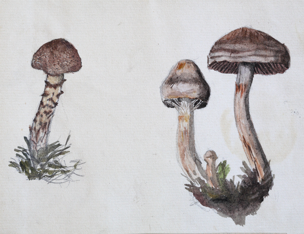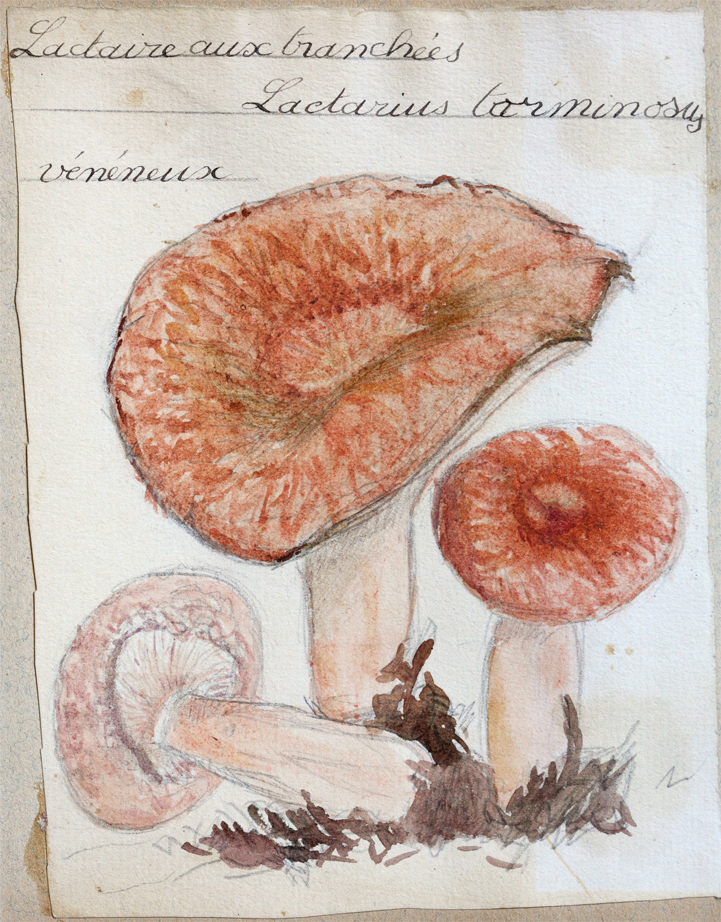 Lactaire aux tranchées (lactarius torminosus), mine de plomb et aquarelle sur papier, 1918-1921